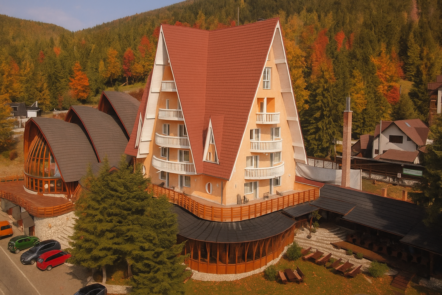 Din toate camerele hotelului oriunde ai privi in cele patru zari se pot vedea padurile nesfarsite de brad, inceputul vaii Ariesului si izvoarele sale, partiile de ski care definesc domeniul skiabil Vartop – Arieseni aflate in apropierea acestuia.